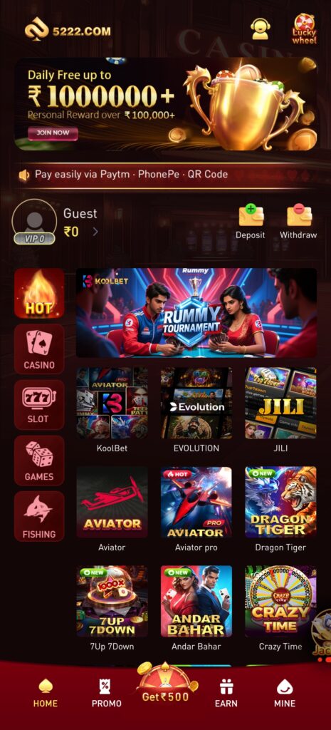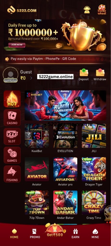 5222 Game is one of India’s most popular and trusted online rummy platforms that brings together fun, strategy, and real cash rewards. Designed for players who love skill-based card games, 5222 Game offers a smooth and secure gaming experience with lightning-fast gameplay, beautiful graphics, and fair play guaranteed.